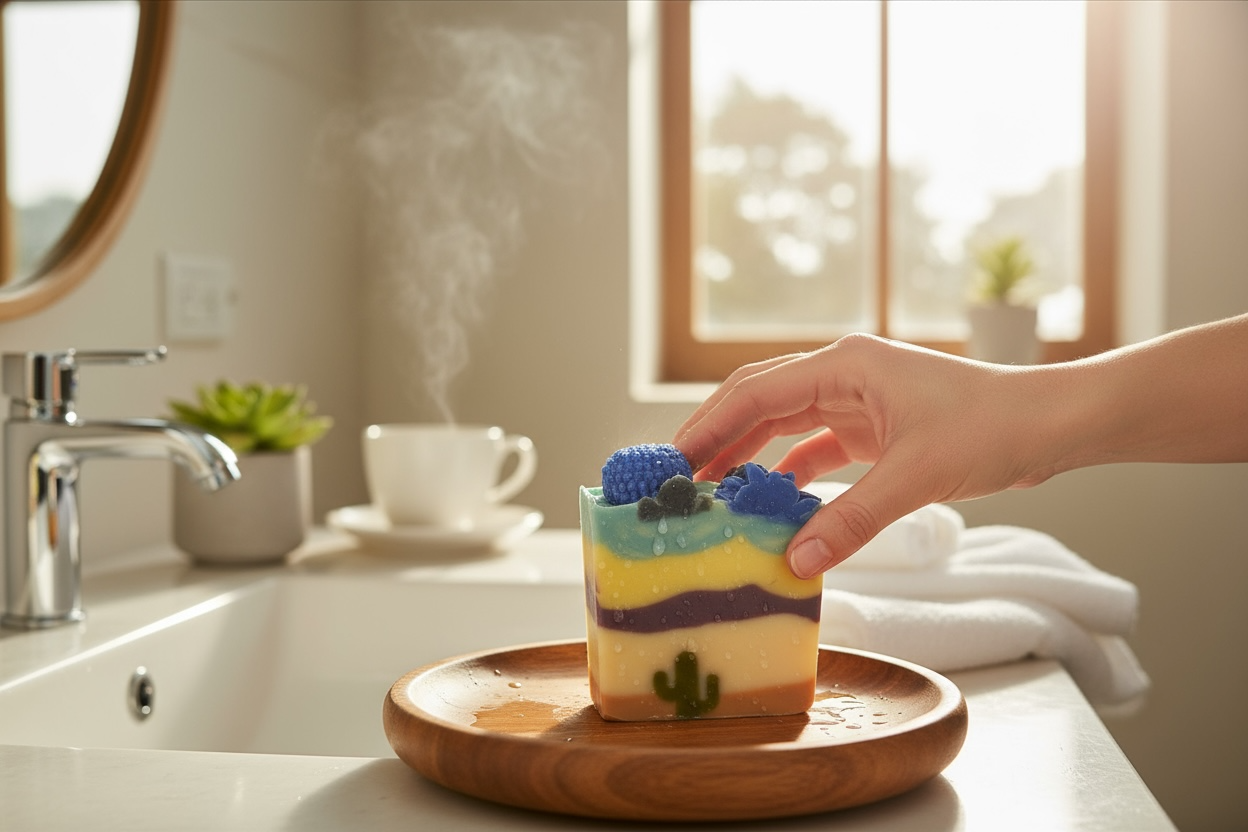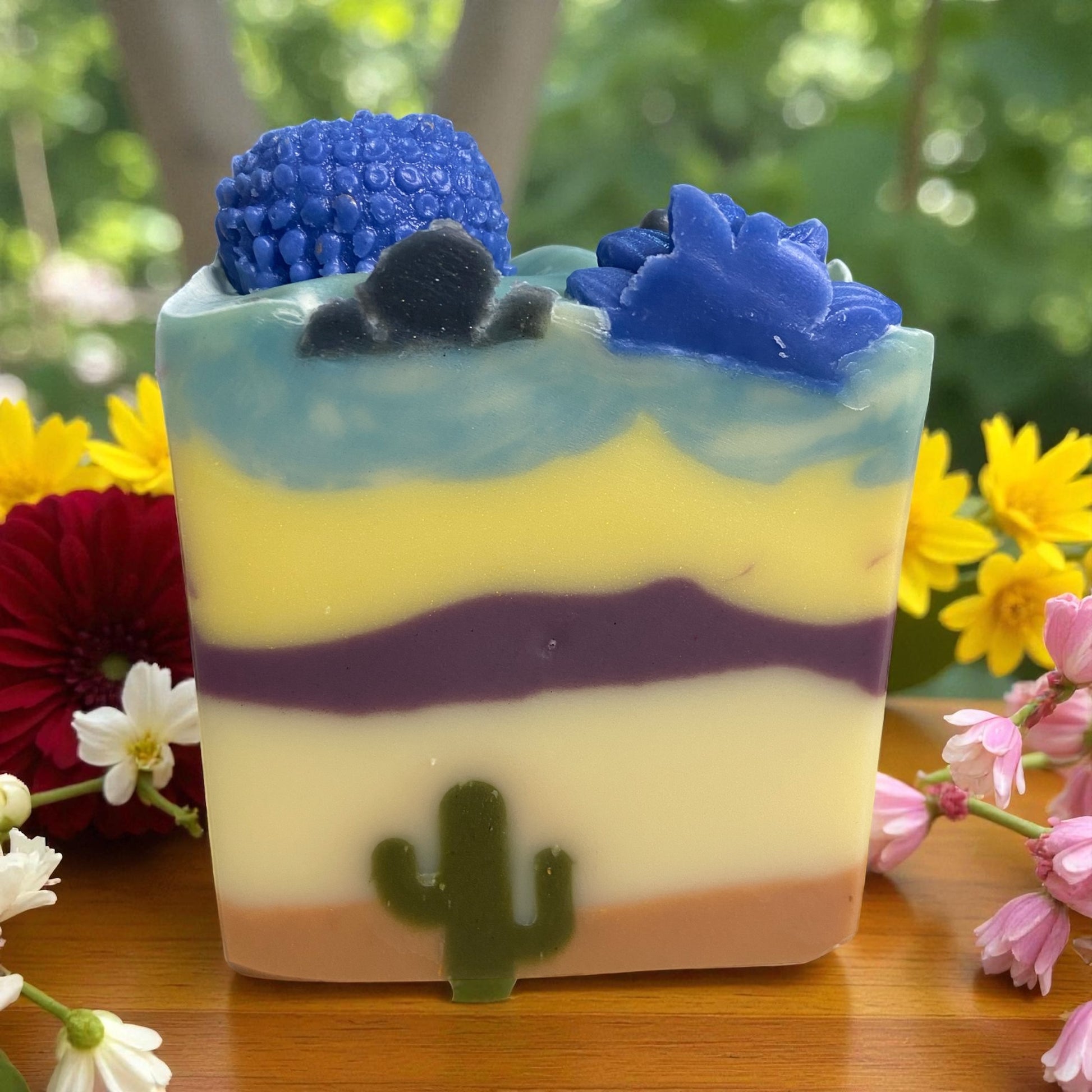 Bring the fresh, uplifting energy of the Southwest to your skincare routine with Desert Cleanse, a handcrafted artisan soap inspired by Arizona’s warm desert mornings. Each bar features layered desert colors, a cactus embed, and hand-poured succulent toppers—making it a functional piece of art as beautiful as the landscape that inspired it.